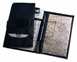This kneeboard uses the expertly-styled VFR Kneeboard in a three-panel jacket. Black nylon with embroidered silver wings logo. Kneeboard is 6 1/2" wide and 9 1/2" high.